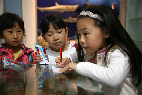 在學(xué)術(shù)報(bào)告廳,小朋友們和家長(zhǎng)一起聆聽了“南極和北極科學(xué)考察”專題科普講座,并與科研人員進(jìn)行可面對(duì)面的交流互動(dòng);在童第周、曾呈奎紀(jì)念展室,兩位老科學(xué)家前曾用過的物品按照他們生前的生活習(xí)慣整齊的擺放著,他們艱苦樸素的生活作風(fēng)、為科學(xué)奮斗終身的奉獻(xiàn)精神讓前來參觀的市民感動(dòng)不已;水族樓海洋科普展廳,鯨魚骨架、海獅、企鵝、翻車魚等珍稀動(dòng)物標(biāo)本,最受小朋友們的喜愛。