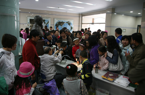 在中科院海洋生物標(biāo)本館,近80萬號(hào)海洋生物標(biāo)本讓前來參觀的市民大開眼界,南極和北極的珍貴海洋生物標(biāo)本更是難得一見。中國(guó)科學(xué)院院士鄭守儀親自上陣,在有孔蟲科普展架為市民耐心講解,大家還可以通過顯微鏡觀看有孔蟲標(biāo)本。標(biāo)本館的工作人員現(xiàn)場(chǎng)為參觀市民演示海洋植物標(biāo)本的制作過程,并指導(dǎo)市民親自動(dòng)手制作藻類標(biāo)本。