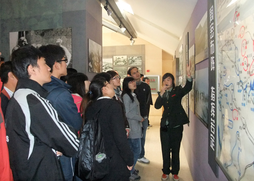 1947年5月,華東野戰(zhàn)軍在陳毅、粟裕的指揮下,經(jīng)過浴血奮戰(zhàn),一舉殲滅了國(guó)民黨最精銳的部隊(duì)——七十四師及其援軍,孟良崮也因此役而揚(yáng)名海外。當(dāng)同學(xué)們走進(jìn)孟良崮革命紀(jì)念基地,首先看到孟良崮革命英雄紀(jì)念碑莊嚴(yán)、肅穆的聳立在綠樹環(huán)繞的廣場(chǎng)上。紀(jì)念碑后面就是孟良崮革命紀(jì)念館,展館的外墻掛板鑲嵌有194700枚彈殼,象征著戰(zhàn)爭(zhēng)在1947年打響。展館共分為四部分,分別向我們展示了當(dāng)時(shí)敵我兵力的懸殊,我軍戰(zhàn)術(shù)的成功以及人民群眾對(duì)我軍的支持。