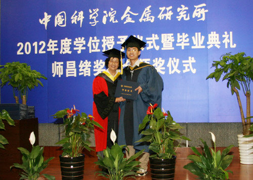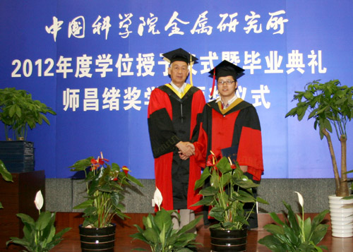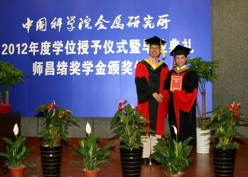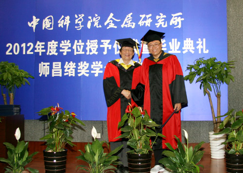 6月8日上午,金屬所2012年度畢業(yè)典禮暨學位授予、師昌緒獎學金頒獎儀式在所學術報告廳隆重舉行。金屬所學位評定委員會委員、導師代表、2012年度畢業(yè)生及親友近400人出席了典禮。