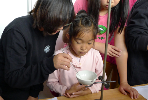 博士實踐團(tuán)志愿者指導(dǎo)同學(xué)們做實驗