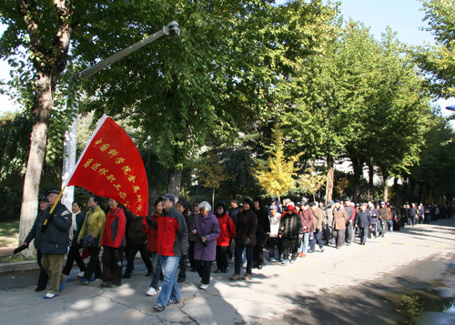 在浩浩蕩蕩的行走隊(duì)伍中,無(wú)論青絲還是銀發(fā),無(wú)論矯健還是蹣跚,每個(gè)人都興高采烈,精神抖擻地展示著金屬所離退休職工晚年的幸福和安康。