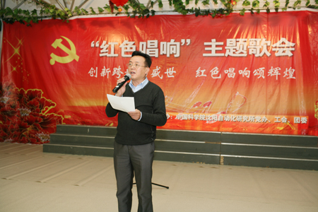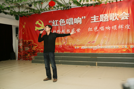 桑子剛書記在歌會(huì)前代表所領(lǐng)導(dǎo)班子及所黨委對本次活動(dòng)的舉行表示祝賀,他說:黨的十七大以來,中國的改革開放、社會(huì)發(fā)展和人民生活取得了長足的進(jìn)步,沈陽自動(dòng)化所的科技創(chuàng)新工作得到了跨越式發(fā)展,取得一大批具有影響力的科研成果。廣大職工、研究生和離退休老同志把對黨、對祖國及對沈陽自動(dòng)化所的熱愛,對遠(yuǎn)大目標(biāo)的追求、對為國民經(jīng)濟(jì)和區(qū)域發(fā)展貢獻(xiàn)力量的信心和決心,融入到美妙的歌聲中。希望大家在本次歌會(huì)上敞開胸懷,放開歌喉,唱出心中豪邁,唱出精氣神,并將這種良好的精神狀態(tài)延續(xù)到今后的工作、學(xué)習(xí)、和生活中去,快樂工作,快樂生活!