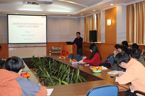 在3月29日、4月19日舉行的材料計(jì)算模擬沙龍第二十三期、二十四期活動(dòng)中,分別邀請(qǐng)到材料加工模擬研究部的鄭成武副研究員及高性能陶瓷研究部的王京陽(yáng)研究員作報(bào)告。鄭成武副研究員作了題為“普碳鋼形變誘導(dǎo)動(dòng)態(tài)相變及后動(dòng)態(tài)相變行為的介觀模擬”的學(xué)術(shù)報(bào)告,主要闡述了如何利用介觀尺度的元胞自動(dòng)機(jī)模型對(duì)形變誘導(dǎo)鐵素體相變及其后動(dòng)態(tài)相變行為進(jìn)行模擬。王京陽(yáng)研究員則以“Genome Approach for Advanced Nano-laminated Carbides and Nitrides”為題目,以耐高溫納米層狀碳/氮化物體系為例,介紹了金屬所近年開展的關(guān)于力學(xué)和熱學(xué)性能的理論預(yù)測(cè),以及新材料制備和性能研究的進(jìn)展。