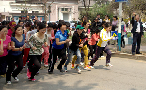 比賽當(dāng)天天氣晴朗,運動員們早早的就來到中門做準(zhǔn)備活動,力爭跑出好成績。