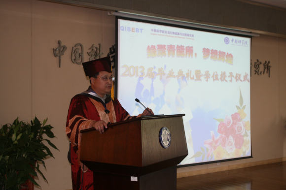 6月17日,中國科學(xué)院青島生物能源與過程研究所2013年度研究生畢業(yè)典禮暨學(xué)位授予儀式隆重舉行。研究所學(xué)位會委員會主席、所長劉會洲、黨委書記隋紅建、學(xué)位委員會副主席、副所長彭輝、呂雪峰等出席活動。