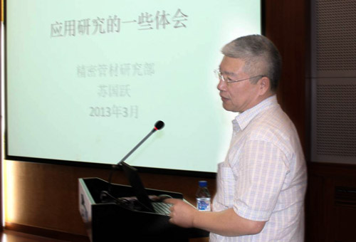 8月30日下午,金屬所青年職工俱樂部“科學(xué)文化講壇”第二期活動在李薰樓468會議室成功舉行,本次活動邀請精密管材研究部主任蘇國躍研究員作了題為“應(yīng)用研究中的一些體會”的主題報告,90余名所內(nèi)職工和研究生參加了此次報告會。