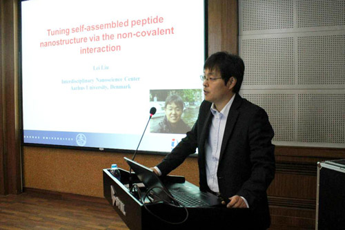 在9月進行的兩次功能材料沙龍中,分別邀請到了福州大學的魏明燈教授及丹麥奧胡斯大學Interdisciplinary Nanoscience Center (iNANO)的劉磊博士作主題報告。魏明燈教授作了題為“納米結(jié)構(gòu)鈦酸鹽--能量轉(zhuǎn)化與儲存新電極材料”的報告;劉磊博士以“Tuning self-assembled peptide nanostructure via the non-covalent interaction”為題與所內(nèi)青年職工進行交流,在報告前,劉博士還向沙龍成員介紹了丹麥奧胡斯大學及其所在課題組的相關情況。