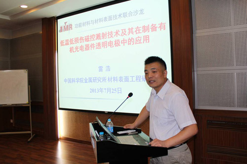 在功能材料與材料表面技術(shù)聯(lián)合沙龍中,材料表面工程研究部的雷浩副研究員作了題為“低溫低損傷磁控濺射技術(shù)及其在制備有機光電器件透明電極的應用”的學術(shù)報告。