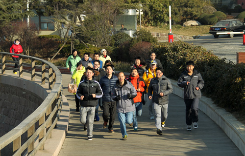 10時整,全體參加活動的職工從海洋所西門出發(fā),沿著海邊木棧道前行,大家邊漫步邊欣賞沿途美麗的海濱景色,交流平時健身經(jīng)驗。大家精神抖擻,步履矯健,成為了冬日青島海濱路上一道流動的風(fēng)景線,充分展示了海洋所人積極向上的精神風(fēng)貌。