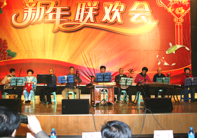 開場舞《好運來》拉開了聯(lián)歡會的序幕,火紅的綢帶熱情舞動,舞出了老同志熱愛生活的昂揚激情;老同志自創(chuàng)的三句半《抒情懷》、《小日本鬼子》,吼出了老同志的愛與憎的炙熱情懷;男生小合唱《故鄉(xiāng)的小路》、女生四重唱《今天是你的生日》演繹了老同志的悠悠深情;女生獨唱《月光淚》、《藍色的蒙古高原》和男女聲彈唱《白毛女》,展示了老同志美妙的嗓音;京劇《智斗》、《霸王別姬》、《梨花頌》,給聽眾送來了國粹經(jīng)典別樣的聽覺享受;民樂合奏《春江花月夜》、《金蛇狂舞》、葫蘆絲齊奏《高山頂上修條河》、《山清水秀好風光》,令聽眾沉浸在跳動的音符之中;藏族舞蹈《聽一聽》舞出了藏族人民的虔誠與喜樂;配樂詩朗誦《在太空,你譜寫著驚天動地的詩篇——獻給錢學森》被三對老夫妻演繹得淋漓盡致,六位老人款款地道出了科研人對錢學森的萬般崇敬;聯(lián)歡會在老年大學合唱團的《遠飛的大雁》和《七律 到韶山》優(yōu)美的旋律中落下帷幕。