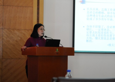 面臨著繁忙的工作、瑣碎的家務(wù),“健康”成為女同志們?nèi)巳岁P(guān)注的話題。為此,女工委特邀了中國醫(yī)學(xué)大學(xué)劉鳳芝教授來所,為大家?guī)硪粓鲱}為“健康自信,幸福相伴”的女性保健知識(shí)講座。劉教授從如何遠(yuǎn)離“亞健康”,怎樣平衡膳食、適量運(yùn)動(dòng)、自我檢查,辦公室實(shí)用保健操等三個(gè)方面,講授如何做一個(gè)愛自己、愛生活的健康幸福女人。講座中,女同志們就自己、家人的健康問題與劉教授積極交流,會(huì)場氣氛熱烈,大家受益匪淺。