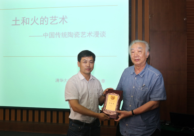 隨后,來自清華大學美術學院的楊永善教授為大家做了題為“中國傳統(tǒng)陶瓷藝術漫談”主題報告。報告開始前,王華代表該所向楊永善頒發(fā)了文化講壇貢獻獎獎牌。