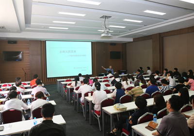 在接下來的報告中,楊永善為大家講述了從新石器時代到清朝,中國歷朝歷代傳統(tǒng)陶器和瓷器的演變過程,并詳細分析了其風格特點和藝術成就。觀眾們不僅欣賞了中國傳統(tǒng)陶瓷代表性作品的唯美形態(tài),同時也深入了解了秦兵馬俑、唐三彩、青花瓷等中國著名陶瓷產(chǎn)品的特點及其發(fā)展的歷史背景。楊永善用他淵博的學識為大家展現(xiàn)了一幅幅精美絕倫的陶瓷作品,并介紹了各個歷史時期出現(xiàn)的著名窯廠和主要陶瓷類別,以及由陶瓷引發(fā)出的中國各個歷史時期的文化特征。他認為,陶瓷工藝可以稱之為“土與火的藝術”,在制陶過程中一定要將土和火這兩種元素完美結(jié)合,才能燒制出巧奪天工的陶瓷作品。楊永善將其巧妙的類比為科學研究與文化藝術之間的關系,他認為,科學和藝術是不能絕對分離的,離開了藝術的熏陶,科學研究很難邁上一個新的臺階,而只有將科學技術與文化藝術有機融合,才能碰撞出新的火花,推動科技和文化事業(yè)的共同發(fā)展。他的這一觀點也與大連化物所持續(xù)推進創(chuàng)新文化建設的思路十分吻合。楊永善性情真摯,語言幽默,打動了在場的每一位觀眾,現(xiàn)場不時爆發(fā)出陣陣熱烈的掌聲。