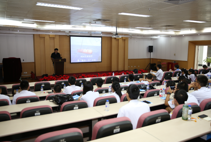 在夏令營(yíng)開營(yíng)大會(huì)上,沈陽(yáng)自動(dòng)化所人教處相關(guān)人員向營(yíng)員們介紹了研究所基本情況和取得的輝煌成果、研究所主要研究方向、研究生教育特色、招生計(jì)劃等,使?fàn)I員們對(duì)沈陽(yáng)自動(dòng)化所基本情況和研究生教育有了深入的了解。開營(yíng)大會(huì)后,由沈陽(yáng)自動(dòng)化所研制的我國(guó)首臺(tái)6000米無(wú)人無(wú)纜潛器(AUV)“潛龍一號(hào)”總設(shè)計(jì)師徐會(huì)希副研究員為營(yíng)員們做了《AUV發(fā)展現(xiàn)狀暨“潛龍一號(hào)”介紹》的專題報(bào)告。他在報(bào)告中介紹了國(guó)內(nèi)外AUV發(fā)展的歷史與現(xiàn)狀,重點(diǎn)介紹了沈陽(yáng)自動(dòng)化所研制的“潛龍一號(hào)”的發(fā)展歷程和成功完成6000米級(jí)應(yīng)用性試驗(yàn)任務(wù)的情況,回答了營(yíng)員提出的各種問題,使?fàn)I員們了解了科研過程、開闊了視野、擴(kuò)充了知識(shí)面。