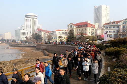 9點30分整,全所500多名職工從海洋所西門出發(fā),沿著青島八大關(guān)海邊木棧道前行。大家精神抖擻,步履矯健,一邊欣賞沿途美麗的海濱景色,一邊交流平時健身經(jīng)驗,成為了冬日青島海濱路上一道流動的風(fēng)景線,充分展示了海洋所人積極向上的精神風(fēng)貌。