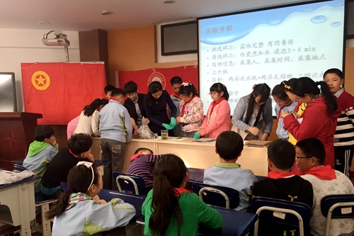 志愿者為同學(xué)們做了“全球變暖在行動(dòng)”氣象科普知識(shí)講座,將枯燥難懂的氣象學(xué)術(shù)語(yǔ)改編成簡(jiǎn)單易懂的圖畫(huà)故事,寓教于樂(lè)、通俗易懂,引起了同學(xué)們的濃厚興趣。同時(shí),志愿者還為大家講解了藻類標(biāo)本知識(shí),并指導(dǎo)同學(xué)們輪流進(jìn)行操作,每位同學(xué)親身實(shí)踐藻類標(biāo)本制作的全過(guò)程。現(xiàn)場(chǎng)氣氛十分熱烈,大家紛紛舉手提問(wèn),爭(zhēng)先恐后的開(kāi)展實(shí)驗(yàn)。