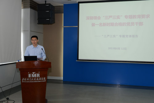 按照中國科學院黨組和沈陽分院黨組關于開展“三嚴三實”專題教育活動的部署和要求,6月12日上午,金屬所舉辦了“三嚴三實”專題教育動員部署會議。所黨委副書記郝欣同志作了題為《深刻領會“三嚴三實”專題教育要求,做一名新時期合格的黨員干部》黨課報告,并代表所黨委就金屬所開展“三嚴三實”專題教育動員工作進行了動員和部署。會議由副所長、黨委委員張健同志主持。所領導班子成員、黨委委員、正、副處領導干部、黨總支和黨支部書記等近50人參加會議。