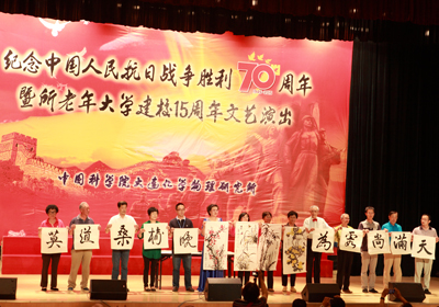 上午,該所在能源樓會議中心舉行了文藝演出。演出開始之前,全場起立,奏唱國歌。隨后,兩位抗戰(zhàn)離休干部賀繼軒、王文龍受邀上臺接受了所里青年職工代表獻(xiàn)上的鮮花。之后,我所老年大學(xué)學(xué)員、老同志等百余名演員通過抗戰(zhàn)題材的舞蹈《紅旗頌》《微山湖》《游擊隊歌》、合唱《彈起我心愛的土琵琶》《保衛(wèi)黃河》《松花江上》《喀秋莎》《黃水謠》《在太行山上》、表演唱《歌唱二小放牛郎》、朗誦《試看天下誰能敵》、樂器演奏《解放軍軍歌》《擁軍花鼓》《子弟兵和老百姓》、現(xiàn)場書法、繪畫展示、聯(lián)唱《團(tuán)結(jié)就是力量》《我和我的祖國》等節(jié)目,表達(dá)了化物所人對祖國歷史的記憶和對祖國未來的祝福。文藝演出在莊重、祥和的氛圍中結(jié)束。