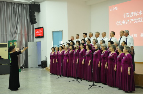 開場節(jié)目是由老同志藝術團帶來的大合唱《四渡赤水出奇兵》、《沒有共產黨就沒有新中國》。在《四渡赤水出奇兵》的表演中,由趙敏、姜鳳岐領唱,張吉娜、張興達領頌。老同志用深情而激昂的歌聲,重現(xiàn)了長征途中,在敵我實力相差懸殊的情況下,中央紅軍在毛澤東指揮下,機動靈活,主動出擊,取得了以少勝多的勝利。在演唱《沒有共產黨就沒有新中國》的過程中,老同志全情投入,歌聲跌宕起伏,感人肺腑。