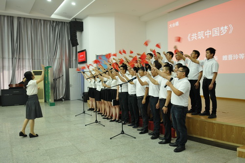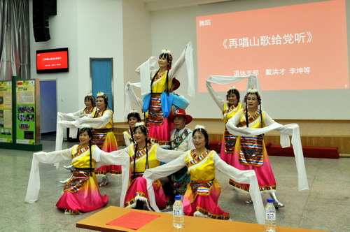 在農業(yè)支部的朱雪峰獨唱《天耀中華》之后,環(huán)境支部和信息編輯開發(fā)支部合唱了《中國,中國,鮮紅的太陽永不落》和《歌唱祖國》。離退休支部的老黨員穿起藏族的傳統(tǒng)服裝,甩起長袖,帶來了舞蹈《再唱山歌給黨聽》。 最后,研究生總支表演了大合唱《共筑中國夢》,給整場文藝匯演畫上了完美的句號。