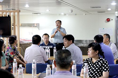 為慶祝中國人民解放軍建軍89周年,紀念中國科學(xué)院海洋研究所成立66周年,8月1日下午,海洋所西海岸園區(qū)科學(xué)號考察船報告廳內(nèi),實驗海洋生物學(xué)重點實驗室第一黨支部、船舶運行管理中心黨支部及管理第一黨支部聯(lián)合開展了一次特色鮮明的“兩學(xué)一做”主題黨日活動。黨委書記兼副所長王凡,黨委委員、所長助理李超倫,紀委委員李鵬程,黨辦主任展翔天,黨支部書記王金霞、杜玉剛、袁兆慧以及60余名黨員參加了活動。