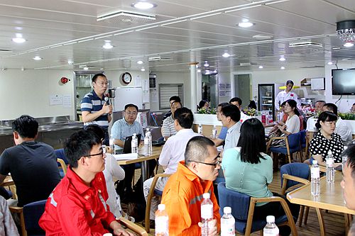 活動結(jié)束后,黨員們結(jié)合各自從事的專業(yè)工作參觀了“科學(xué)”號考察船的船載實驗室。