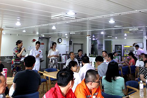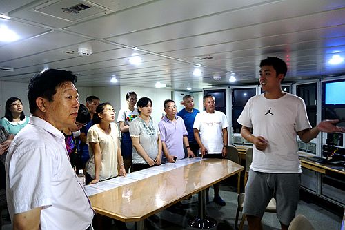 黨課后,“科學(xué)”號黨小組長孟慶超同志向大家介紹了本次出海期間黨小組“兩學(xué)一做”學(xué)習(xí)教育開展的特色工作,觀看了出海期間全體船隊員劈風(fēng)斬浪、挑戰(zhàn)海況、安全作業(yè)的相關(guān)視頻,大家對海上考察期間這種團結(jié)協(xié)作、以船為家、勇創(chuàng)佳績的精神深深嘆服和感動。三個黨支部聯(lián)合開展了“兩學(xué)一做”知識競賽,競賽試題內(nèi)容摘自《黨章》、《準則》、《條例》以及習(xí)總書記系列講話等,主持人讀完題目后,在座的黨員紛紛舉手搶答,現(xiàn)場氣氛熱烈活躍,反應(yīng)快、答題準,展現(xiàn)了學(xué)有所獲、學(xué)有所用的風(fēng)采,彰顯了黨員們積極向上、銳意進取的精神風(fēng)貌。通過本次知識競賽,督促黨員進一步系統(tǒng)學(xué)習(xí)黨規(guī)黨紀和踐行使命宗旨,將學(xué)習(xí)教育內(nèi)化于心,外化于行,再次增強了政治意識、大局意識、核心意識和看齊意識。