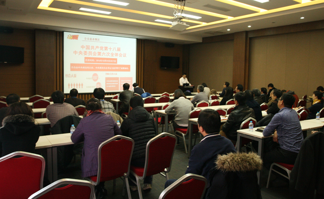 會上,黨委書記王華作《學習宣傳貫徹黨的十八屆六中全會精神》報告,報告以全會公報的十二個“關(guān)鍵詞”為線索,介紹了黨中央“四個全面”的戰(zhàn)略布局與十八屆歷次全會的關(guān)系、全會提出以習近平同志為核心的黨中央的重大意義、關(guān)于新形勢下黨內(nèi)政治生活的若干準則原文、中國共產(chǎn)黨黨內(nèi)監(jiān)督條例原文、以及貫徹黨內(nèi)民主、貫徹群眾路線等內(nèi)容。