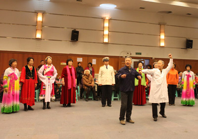 在夕陽紅小樂隊的現(xiàn)場伴奏下,活動在歌伴舞《相逢是首歌》中拉開了序幕。離退休的男同志們也積極來到會場為活動助興,男聲四重唱《鴻雁》、男聲獨唱《青藏高原》、《二月里來》贏得大家的熱烈掌聲;女聲獨唱《我們的中國夢》,在優(yōu)美的歌聲中,唱響中國夢,表達愛國心;獨舞《美人吟》、《九兒》溫婉優(yōu)雅,讓觀眾們大飽眼福;男女聲組合唱《香巴拉并不遙遠》悠揚而歡快,表達了對美好生活的向往;朗誦《放飛中國夢》,感情真摯,激情飛揚,充滿了感染力,將聯(lián)歡會推向高潮;女聲小合唱《萬泉河水》,飽含著對祖國的無限深情,為聯(lián)歡活動畫上了圓滿的句號。