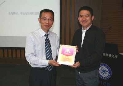 蔡睿代表大連化物所向劉云龍頒發(fā)了“大連化物所文化講壇貢獻獎”獎牌。