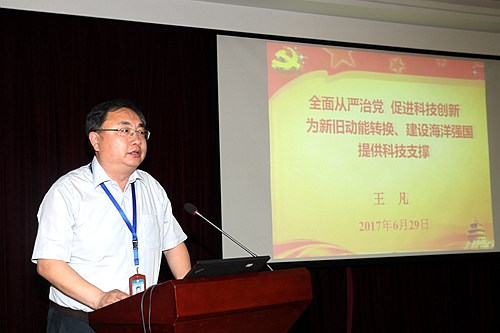 黨委委員、所長王凡同志作了題為《全面從嚴治黨,促進科技創(chuàng)新,為新舊動能轉(zhuǎn)換、建設(shè)海洋強國提供科技支撐》的黨風(fēng)廉政主題報告。他指出,目前反腐敗形勢依然嚴峻復(fù)雜,廣大黨員要嚴明黨的紀律和規(guī)矩,把紀律挺在前面,絕不碰觸黨紀國法高壓線;他還傳達了白春禮院長在2017年院黨建暨黨風(fēng)廉政建設(shè)工作會議上的講話精神以及山東省第十一次黨代會精神,并從海洋所與煙臺海岸帶所兩所融合的實際工作出發(fā),闡述了研究所發(fā)展的新舉措、新戰(zhàn)略、新政策和新導(dǎo)向,“志和者,不以山海為遠”,他希望大家能以更大的決心、氣力和勇氣深入推進全面從嚴治黨向縱深發(fā)展,以優(yōu)異成績實現(xiàn)研究所創(chuàng)新跨越發(fā)展。