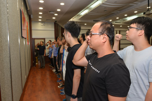 報告會后,金屬所舉行了新黨員入黨宣誓儀式。27名新黨員面向黨旗莊嚴宣誓。老黨員也與新黨員一起重溫了入黨誓詞,回顧了入黨宣誓時的莊嚴承諾和堅定決心,進一步增強了責(zé)任感和使命感。