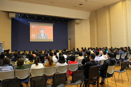2017年10月18日上午,中國共產黨第十九次全國代表大會在北京隆重召開,這是全黨、全國各族人民政治生活中的一件大事。中共中國科學院煙臺海岸帶所黨委組織全體黨員集中收看了開幕會盛況,黨委書記、副所長高玲瑜,常務副所長楊紅生,黨委副書記、紀委書記王曉斌,在所的黨委委員、紀委委員、各黨支部委員和職工、學生黨員,以及部分民主黨派代表、職工群眾和研究生共160多人,全程認真聆聽了習近平總書記代表第十八屆中央委員會向大會作的題為《決勝全面建成小康社會 奪取新時代中國特色社會主義偉大勝利》的報告。