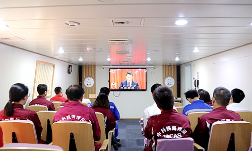 正在海上執(zhí)行科考任務(wù)的“科學(xué)”號科考船收看十九大開幕式