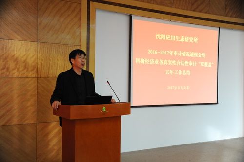 會上,沈陽生態(tài)所黨委副書記、紀委書記郭秀銀作“沈陽應用生態(tài)研究所2016-2017年審計情況通報暨科研經(jīng)濟業(yè)務真實性合法性審計‘雙覆蓋’五年工作總結(jié)”的報告。首先,他通報了2016-2017年審計工作情況,包括分院審計組的審計情況和內(nèi)部審計情況,介紹了審計過程、總體情況、存在的問題、審計意見與建議等。隨后,郭秀銀作科研經(jīng)濟業(yè)務真實性合法性審計“雙覆蓋”五年工作總結(jié),介紹了研究所審計工作歷程、審計工作機制、審計工作進度及審計效果評估,并通報了因公出國、會議費、差旅費、材料費、測試費等不同重點領域的典型案例。他指出研究所在制度建設與執(zhí)行、科研團隊審計意識、管理部門履職盡責等方面存在的主要問題,并對下一步工作進行了部署。