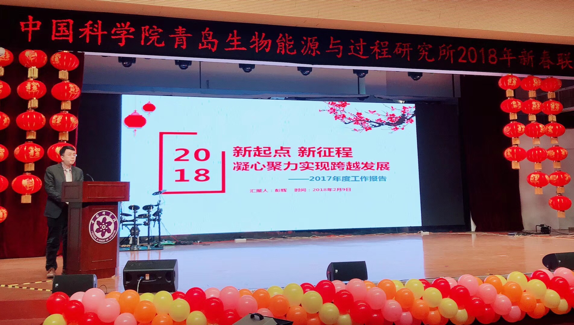 金雞報曉去,瑞犬迎春來。2月9日,青島能源所舉行2017年度總結(jié)大會暨2018年新春聯(lián)歡會。研究所黨委書記、副所長彭輝,黨委副書記、紀(jì)委書記馮埃生,副所長呂雪峰與全體師生歡聚一堂,相約2018。