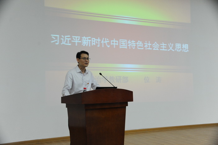 位濤副教授的報告分為習近平新時代中國特色社會主義思想產(chǎn)生的歷史背景、習近平新時代中國特色社會主義思想的主要內(nèi)容、習近平新時代中國特色社會主義思想的堅持和發(fā)展等三個部分。在講述習近平新時代中國特色社會主義思想產(chǎn)生的歷史背景時,位濤介紹了習近平新時代中國特色社會主義思想的形成和發(fā)展,以及世界大發(fā)展大變革的國際環(huán)境。在闡述習近平新時代中國特色社會主義思想的主要內(nèi)容時,他分別從宏觀、中觀、微觀等角度剖析了習近平新時代中國特色社會主義思想的內(nèi)涵,明確了習近平新時代中國特色社會主義思想的根本宗旨,習近平新發(fā)展理念的涵義,解讀了中國夢的內(nèi)涵外延,以及“五位一體”總體布局、“四個全面”戰(zhàn)略布局、“十四個堅持”基本方略等重要內(nèi)容。最后,位濤副教授論述了如何堅持和發(fā)展習近平新時代中國特色社會主義思想,此外他還分享了自己學習和研究習近平新時代中國特色社會主義思想的收獲和感悟。