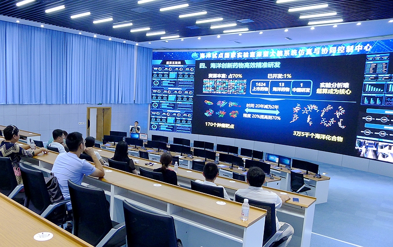 在專業(yè)講解人員的引導(dǎo)下,支部黨員參觀了海洋試點(diǎn)國(guó)家實(shí)驗(yàn)室的科考船共享平臺(tái)、創(chuàng)新成果展廳、“透明海洋”觀測(cè)系統(tǒng)、深藍(lán)大腦系統(tǒng)仿真與協(xié)同控制中心及海洋高端儀器設(shè)備研發(fā)平臺(tái)。