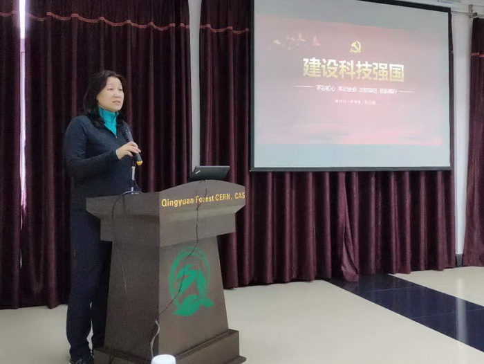 為結(jié)合科技創(chuàng)新實(shí)際,貫徹落實(shí)院黨組關(guān)于在全院深入開(kāi)展“講愛(ài)國(guó)奉獻(xiàn)、當(dāng)時(shí)代先鋒”主題活動(dòng)的要求,中國(guó)科學(xué)院沈陽(yáng)應(yīng)用生態(tài)研究所科技資財(cái)檢測(cè)黨支部于9月29-30日前往清原森林生態(tài)系統(tǒng)觀測(cè)研究站(清原站)開(kāi)展主題黨日活動(dòng)。沈陽(yáng)生態(tài)所黨委委員、所長(zhǎng)朱教君作為聯(lián)系支部的所黨委委員做專題黨課報(bào)告,支部20余名黨員參加了此次活動(dòng)。沈陽(yáng)分院分黨組成員、副院長(zhǎng)馬越紅,沈陽(yáng)分院黨辦副主任劉旭東,省科技廳成果轉(zhuǎn)化與獎(jiǎng)勵(lì)處副處長(zhǎng)楊曉勇受邀參加活動(dòng);沈陽(yáng)生態(tài)所黨辦主任胡志斌、副主任宗文君列席參加活動(dòng)。