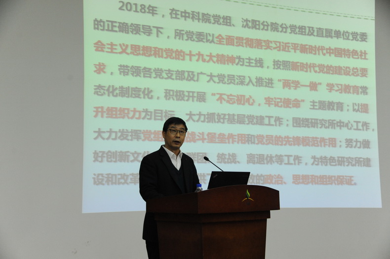 黨委書記金昌杰代表所黨委做工作報(bào)告。他指出,2018年在中科院黨組、沈陽分院分黨組及直屬單位黨委的正確領(lǐng)導(dǎo)下,所黨委以全面貫徹落實(shí)習(xí)近平新時(shí)代中國(guó)特色社會(huì)主義思想和黨的十九大精神為主線,按照新時(shí)代黨的建設(shè)總要求,帶領(lǐng)各黨支部及廣大黨員深入推進(jìn)“兩學(xué)一做”學(xué)習(xí)教育常態(tài)化制度化,積極開展“不忘初心,牢記使命”主題教育;以提升組織力為目標(biāo),大力抓好基層黨建工作;圍繞研究所中心工作,大力發(fā)揮黨組織的戰(zhàn)斗堡壘作用和黨員的先鋒模范作用;為特色研究所建設(shè)和改革創(chuàng)新發(fā)展提供了切實(shí)有效的政治、思想和組織保證。