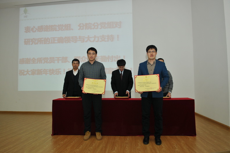隨后,所黨委舉行“兩先兩優(yōu)”表彰儀式。班子成員向2018年度先進(jìn)黨支部、先進(jìn)黨小組、優(yōu)秀黨務(wù)工作者、優(yōu)秀黨員、優(yōu)秀團(tuán)干部和優(yōu)秀團(tuán)員頒發(fā)了獎(jiǎng)狀和榮譽(yù)證書。所黨委希望受表彰的先進(jìn)集體和優(yōu)秀個(gè)人要珍惜榮譽(yù),再接再厲,在各自崗位上繼續(xù)發(fā)揮先鋒模范作用,努力在今后的工作中做出更加優(yōu)異的成績(jī)。所黨委號(hào)召全所各級(jí)黨組織和廣大黨員要認(rèn)真向他們學(xué)習(xí),牢記黨的宗旨,履行黨員義務(wù),開拓進(jìn)取,扎實(shí)工作,以更加飽滿的激情,更加務(wù)實(shí)的作風(fēng),在研究所改革、創(chuàng)新、發(fā)展中作一流貢獻(xiàn),創(chuàng)一流成績(jī)。