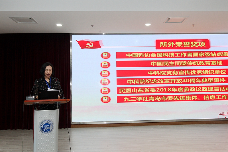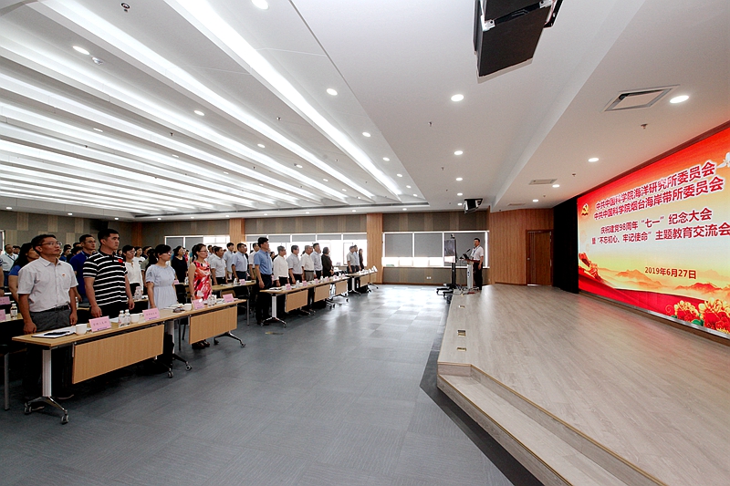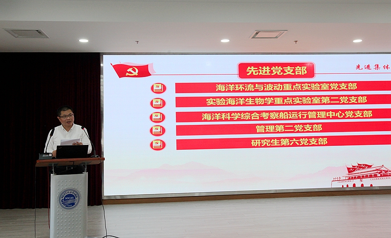 慶祝大會表彰了2018-2019年度黨建工作獲所外表彰榮譽獎項和2018年度黨建工作“兩先兩優(yōu)”及創(chuàng)新文化建設(shè)獎。黨委委員張盾宣讀了《關(guān)于表彰獎勵2018-2019年度黨建工作獲所外榮譽獎項的通知》,黨委委員曾志剛宣讀了《關(guān)于表彰2018年度“兩先兩優(yōu)”及“創(chuàng)新文化建設(shè)獎”的通知》。海洋所原所長孫松及與會黨委委員、紀(jì)委委員共同向海洋環(huán)流與波動重點實驗室黨支部等5個先進(jìn)黨支部、海洋地質(zhì)與環(huán)境重點實驗室黨支部等5個創(chuàng)新文化建設(shè)獎黨支部、實驗海洋生物學(xué)重點實驗室第一黨支部黨小組等6個先進(jìn)黨小組,以及25名優(yōu)秀共產(chǎn)黨員、5名優(yōu)秀黨務(wù)工作者分別頒發(fā)了榮譽證書。