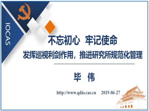 會議在雄壯的國歌聲中開幕。王凡同志在煙臺海岸帶所通過同步視頻形式作了題為《不忘初心,牢記使命——服務(wù)國家海洋高質(zhì)量發(fā)展》的專題報告。他結(jié)合自己參加6月17日至19日“中科院2019年所局級黨政正職專題培訓(xùn)班”經(jīng)歷,從“深刻領(lǐng)會‘不忘初心,牢記使命’主題教育的重大意義”“不忘初心,牢記海洋科學(xué)發(fā)展的歷史使命”“真抓落實,勇做新時代科技創(chuàng)新的排頭兵”三個方面進(jìn)行了報告。他強調(diào),為中國人民謀幸福,為中華民族謀復(fù)興,是中國共產(chǎn)黨人的初心和使命。海洋所主題教育緊密圍繞中科院海洋大科學(xué)研究中心建設(shè)、“一帶一路”海洋科技合作行動和山東省新舊動能轉(zhuǎn)換等方面真抓落實。作為所長,將黨政密切配合,不斷錘煉品行作風(fēng),共同做好表率,將時刻牢記新時代國家戰(zhàn)略科技力量的歷史使命,在更高起點、更高目標(biāo)上推動中科院海洋大科學(xué)中心、兩所融合及研究所改革創(chuàng)新發(fā)展,共同帶領(lǐng)研究所處級以上領(lǐng)導(dǎo)干部落實院黨組提出的“大格局、有本領(lǐng)、敢斗爭、守底線、作表率”的“十五字要求”,努力把工作放到國家改革發(fā)展的大形勢下去應(yīng)對,放到世界科技發(fā)展的大背景下去謀劃,放到中科院發(fā)展的大格局下去思考,學(xué)以致用,知行合一,鼎力推動海洋科技服務(wù)國家海洋高質(zhì)量發(fā)展。