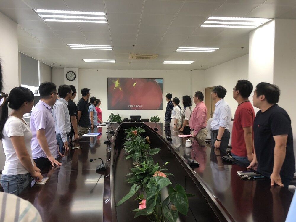 本次活動在全體人員嘹亮的國歌聲中開始,呂劍對本次活動的組織背景做了簡單介紹,并號召支部黨員同志弘揚愛國奮斗精神,堅守“創(chuàng)新科技、報國為民”初心開展科研工作。隨后,全體成員觀看了彩色影像資料《開國大典》,并合唱了《歌唱祖國》、《沒有共產(chǎn)黨就沒有新中國》和《我和我的祖國》三首歌曲,用歌聲表達(dá)了科研工作者對祖國的熱愛之情。