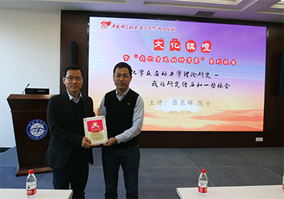 11月25日上午,大連化物所分子反應(yīng)動力學(xué)國家重點(diǎn)實(shí)驗(yàn)室主任張東輝院士做客文化講壇第165講暨“我們身邊的科學(xué)家”系列報告會第4期,在交流中心第四會議室做了題為“化學(xué)反應(yīng)動力學(xué)理論研究——我的研究經(jīng)歷和一些體會”主題報告。作為黨委理論學(xué)習(xí)中心組的學(xué)習(xí)內(nèi)容,在連所領(lǐng)導(dǎo)參加了報告會。黨委書記王華向張東輝贈送了“大連化物所文化講壇貢獻(xiàn)獎”獎牌,會議由黨委副書記毛志遠(yuǎn)主持。