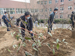 各黨支部將植樹活動(dòng)與本月主題黨日有機(jī)結(jié)合,黨員們熱情高漲,搬運(yùn)樹苗、揮鍬挖坑、填土栽種,大家分工協(xié)作、配合默契,經(jīng)過四個(gè)下午的努力,百余株桂花、核桃等樹苗在園區(qū)辦公樓前形成了一道道靚麗的風(fēng)景線。