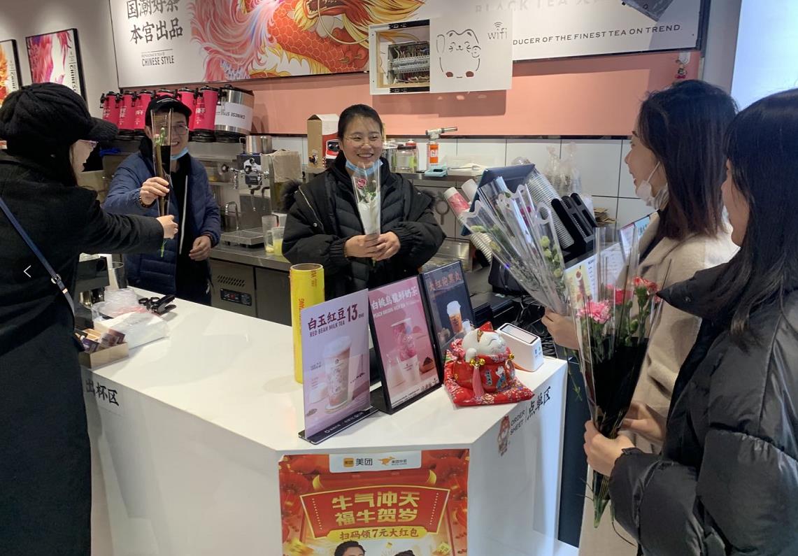 支部黨員代表把一束束鮮花獻給依然奮戰(zhàn)在工作一線的女性勞動者,她們普通而平凡,在自己的崗位上辛勤勞動,用自己的雙手為社區(qū)、為城市增色。
