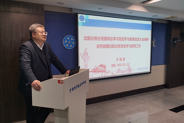 會(huì)上,于海斌作題為《傳達(dá)學(xué)習(xí)黨史學(xué)習(xí)教育動(dòng)員大會(huì)精神 研究部署沈陽(yáng)分院黨史學(xué)習(xí)教育工作》專題報(bào)告,結(jié)合自身學(xué)習(xí)黨史體會(huì)與工作實(shí)際,傳達(dá)了習(xí)近平總書記在黨史學(xué)習(xí)教育動(dòng)員大會(huì)上的重要講話精神,解讀了院黨史學(xué)習(xí)教育實(shí)施方案要求,對(duì)分院開展黨史學(xué)習(xí)教育進(jìn)行全面動(dòng)員部署。
