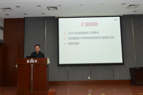 黨辦副主任趙翔宇介紹了金屬所“2021年黨的建設(shè)工作要點”,結(jié)合黨建具體任務(wù)臺帳詳細(xì)解讀了年內(nèi)黨建重點工作任務(wù),介紹了金屬所“慶祝建黨100周年和黨史學(xué)習(xí)教育計劃”、意識形態(tài)工作責(zé)任制主要內(nèi)容以及各支部近期學(xué)習(xí)重點任務(wù)、對制訂“三會一課”工作計劃的要求等內(nèi)容。